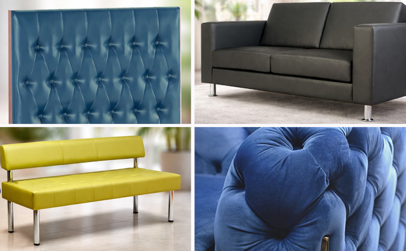Почему устарела. Глубокие ромбы со стразами и декоративными пуговицами ассоциируются с банкетными залами нулевых. Это визуальный шум, пылесборник и кошмар для химчистки — грязь набивается в складки, а пуговицы отрываются при интенсивной эксплуатации. Для ресторана или отеля — это рост расходов на обслуживание без отдачи.