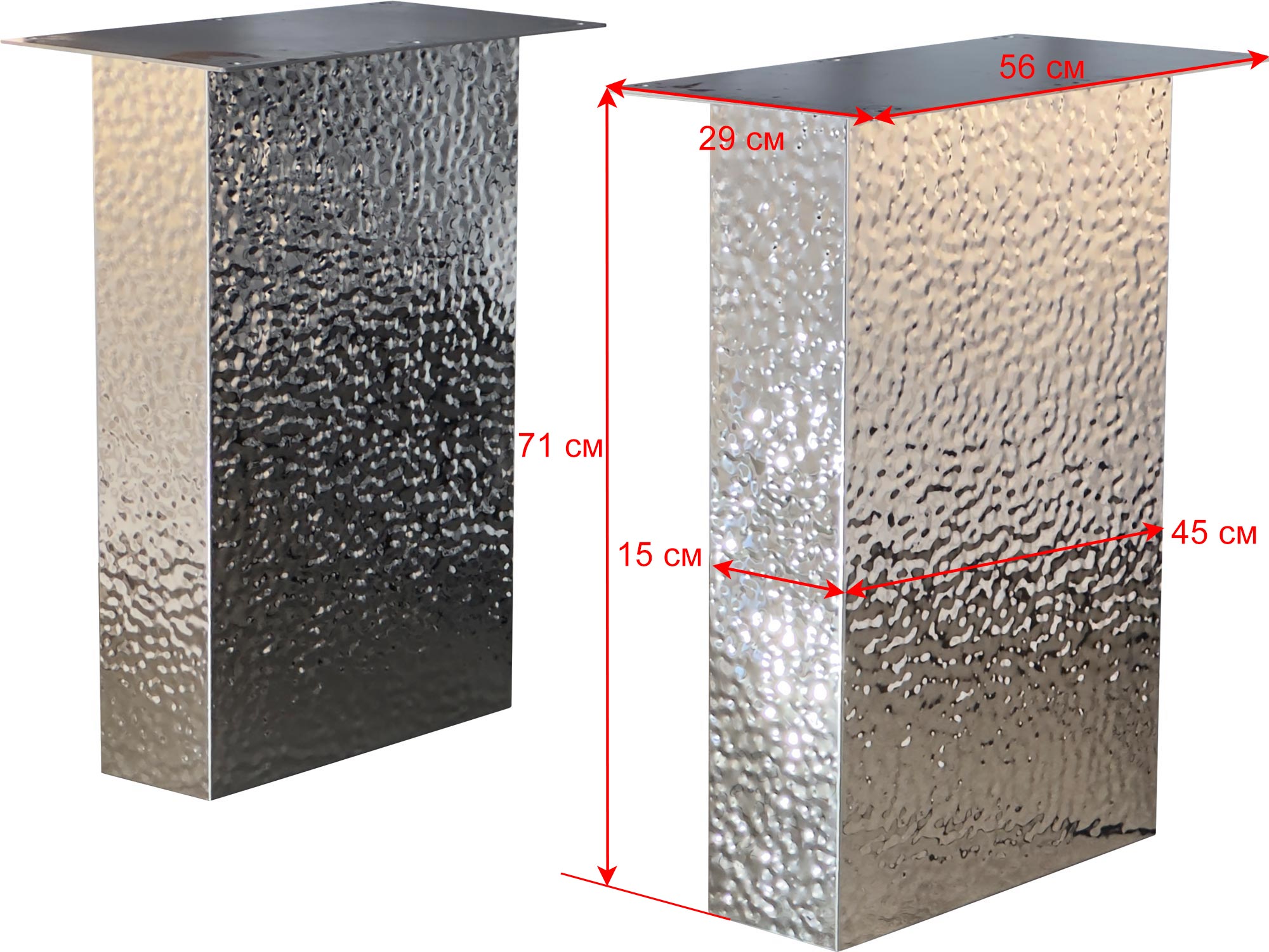 Подстолье из нержавеющей стали 2134EM Глубина: 15 см Длина: 45 см Высота: 72 см Все размеры указаны для одной позиции. В упаковке две штуки. Возможные варианты цвета: 2134EM - лаковое покрытие, цвет "серебро" 2135 ЕМ - лаковое покрытие, цвет - "под золото" (нитрид титана) Рекомендуемый размер столешницы: 2000х1000 Заказать подстолье для своего проекта в городе Щёлково, вы можете связавшись с нами любым удобным для вас способом - по телефону, по электронной почте или заполнив форму обратной связи на нашем сайте.